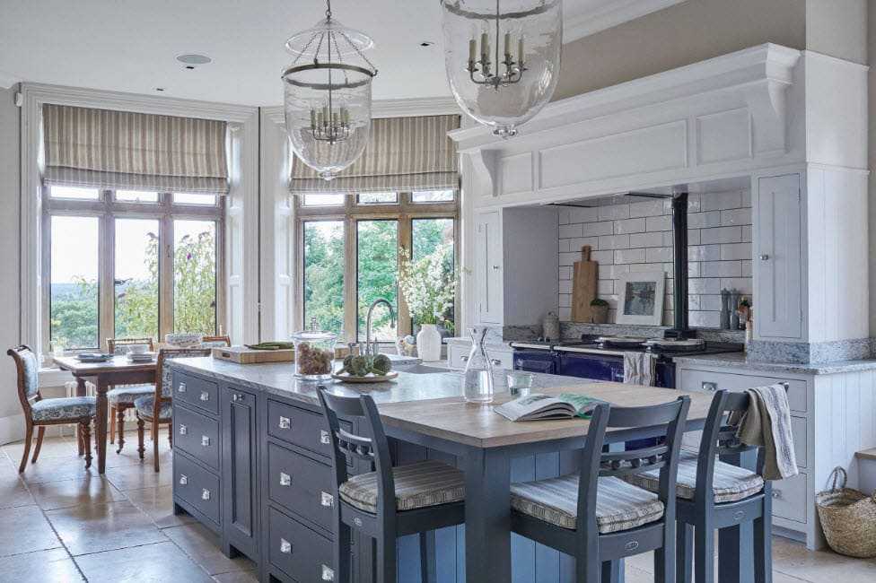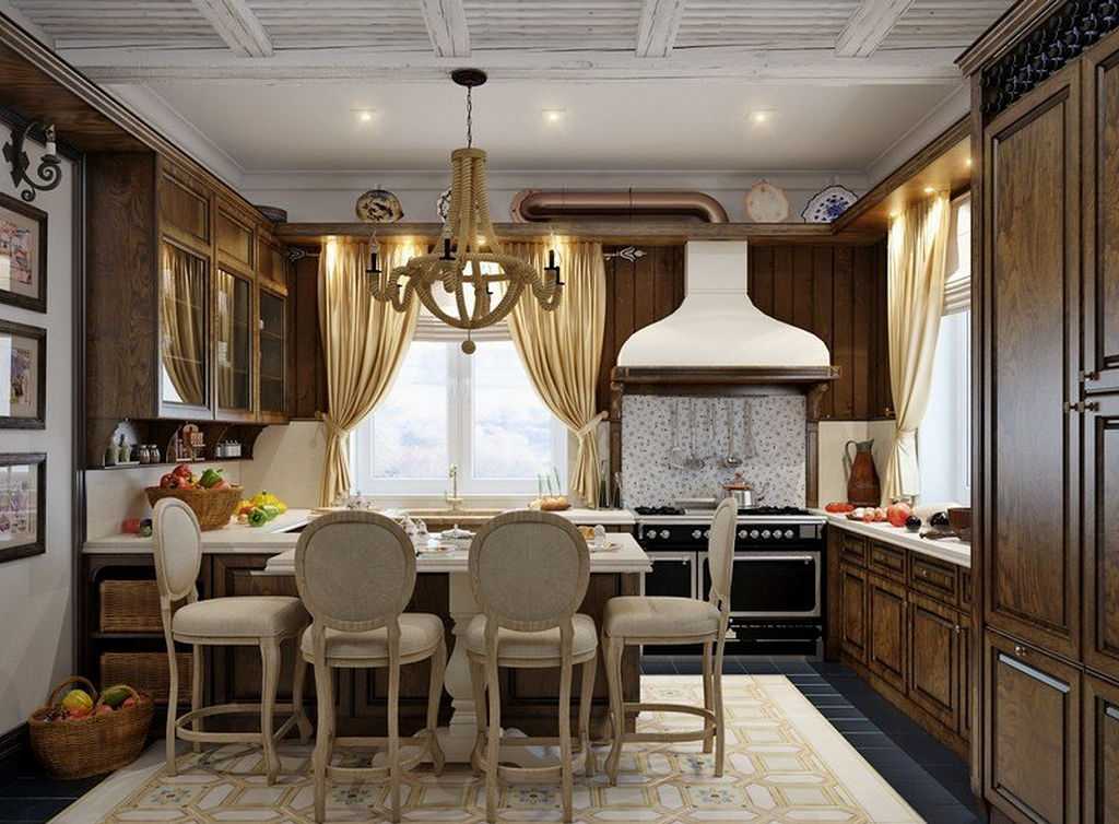 Дизайн просторной кухни в стиле кантри.