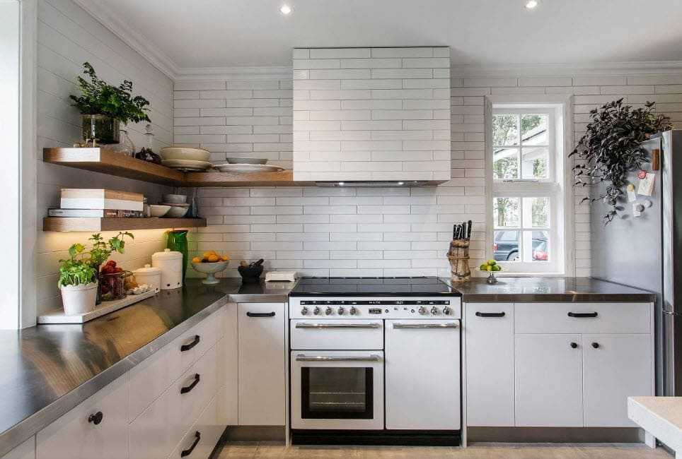 Попытайтесь добавить обаяние возраста в новую кухню, применяя разные текстуры и обычные идеи, например жестяные хлебницы, свежие цветы и вешалки для посуды.