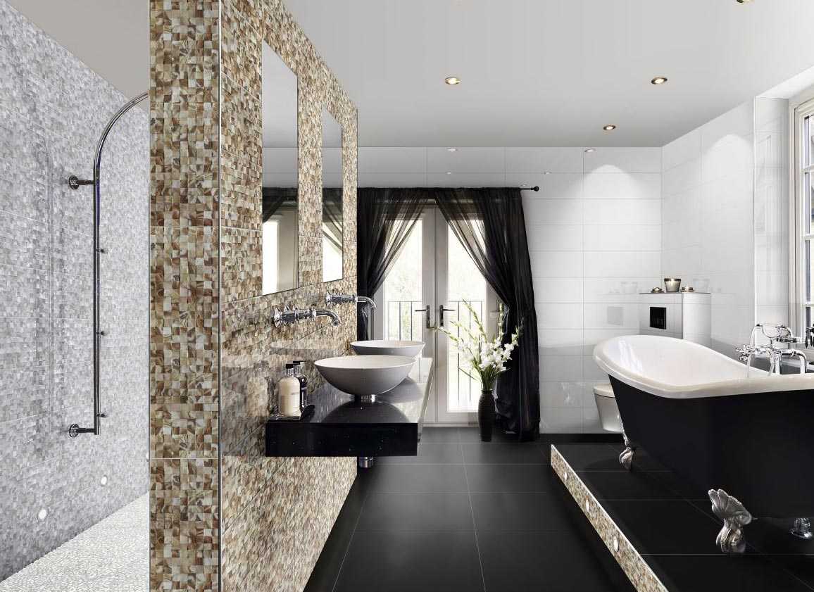- Для пола и низа стен ванной покупайте темную плитку, она меньше пачкается и легче моется. Количество темных рядов на стенах должно быть таким, чтобы последний из них выступал над верхним краем ванны примерно на 10–15 см.