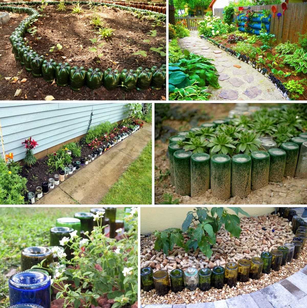 Из пластиковых и стеклянных бутылок можно сделать красивое ограждение для цветников, клумб и рокариев самой разнообразной формы