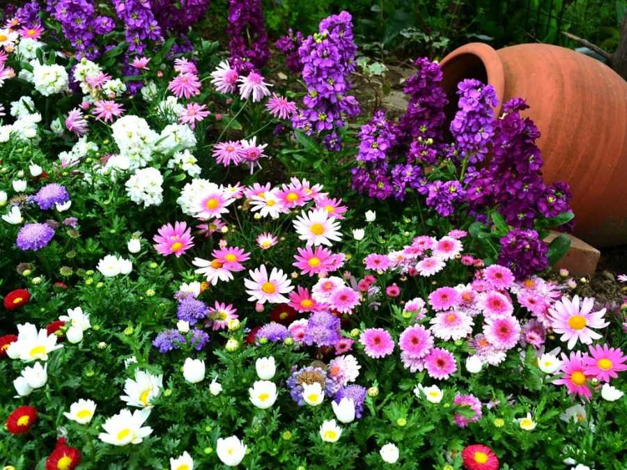 В основу композиции, как правило, помещают яркие многолетние растения, а однолетние служат дополнительным фоном. Преимущество в том, что их можно менять каждый год и придавать цветнику новый вид.