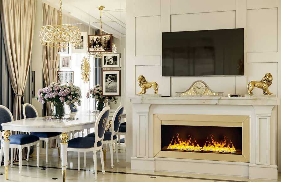 Небольшая гостиная в квартире или просторное помещение в частном доме станет теплее и уютнее с камином