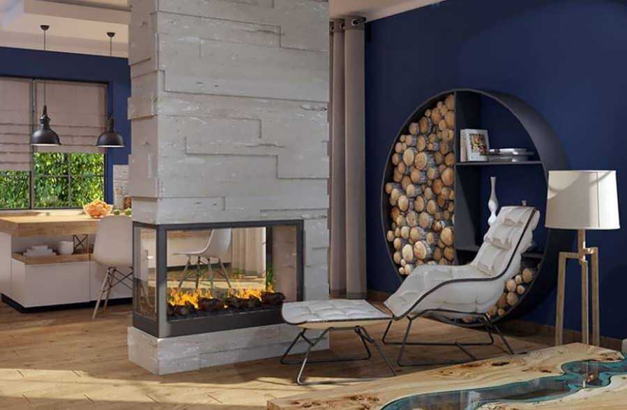 Безусловно, к ним можно отнести трехсторонние камины. Особенно, если конструкция не предусматривает стекла. Тогда кажется, что прямо на ваших глазах происходит магия. Есть и еще один плюс: когда камин выключен, гостиная и кухня воспринимаются как единое пространство. Рейтинг производителей диванов ищите у нас на сайте флет-хаус.