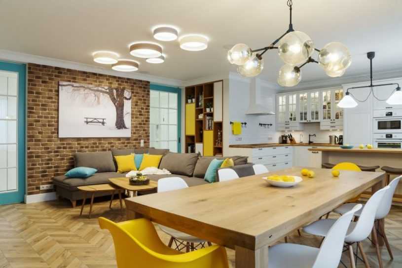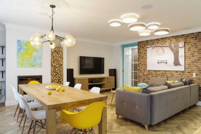Поскольку в таких комнатах имеется много свободного места, вы можете придерживаться тенденции объединения нескольких интерьеров. Например, обустроить спальню гостиную в скандинавском стиле или соединить зал с кухней. Интерьеры такого типа не отличаются особой роскошью, но им присуще гораздо большее – практичность и домашний уют.