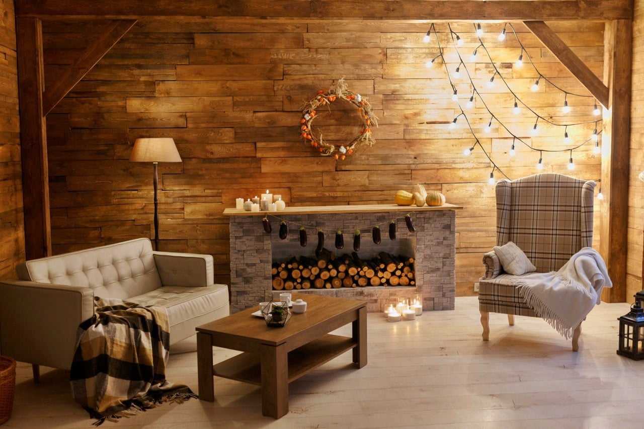 Одним из способов воссоздать атмосферу домика в альпийских горах является наличие камина – настоящего или имитации. Для текстильных изделий используют грубоватые натуральные ткани. В качестве декоративных аксессуаров выставляют чучела животных, рога, коллекции оружия, картины на охотничью тематику.