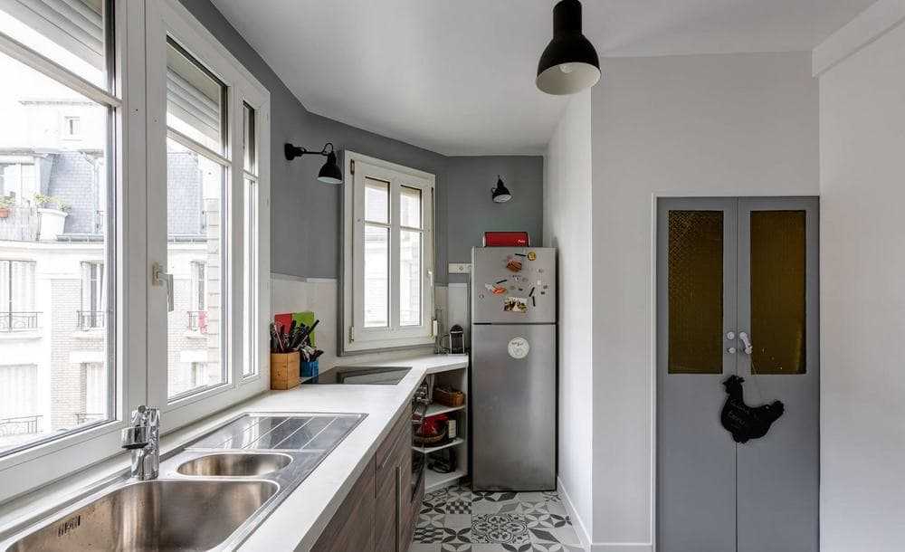 перенос мойки, варочной поверхности и рабочей столешницы к окну является лучшим вариантом для кухни. Здесь вопрос освещения и удобства решается одновременно.