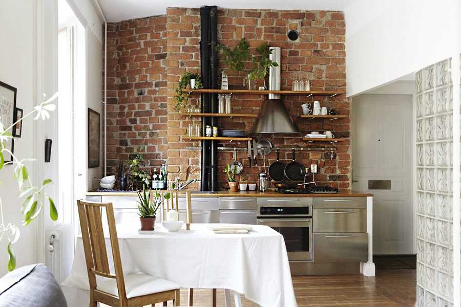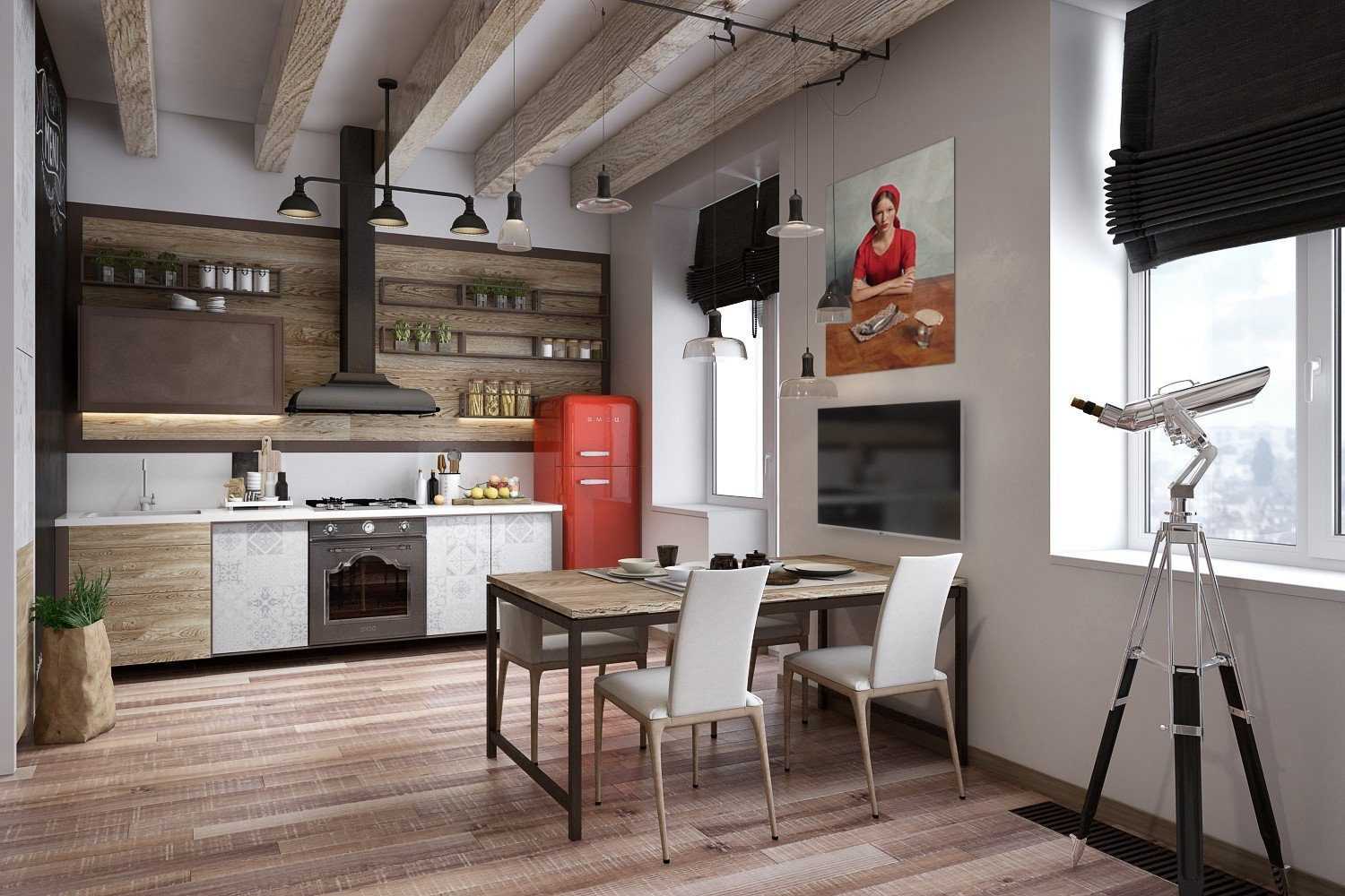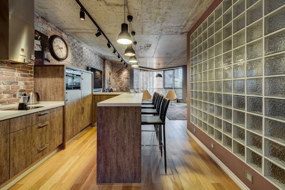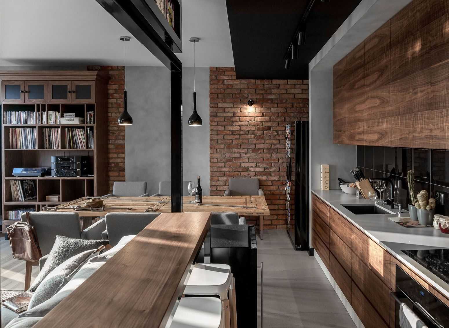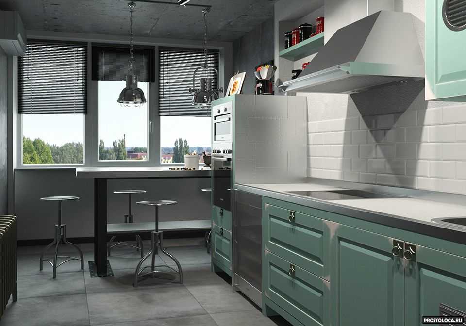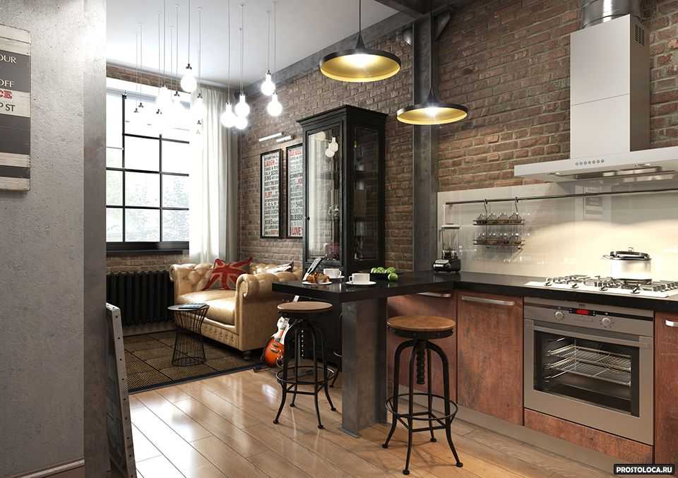 Если есть возможность сделать кухню-гостиную или столовую — супер. Нестандартная планировка и форма помещения выгодны лофту. В квартире с прямоугольной кухней сложнее, но есть варианты достижения приемлемого дизайна при минимальных затратах.