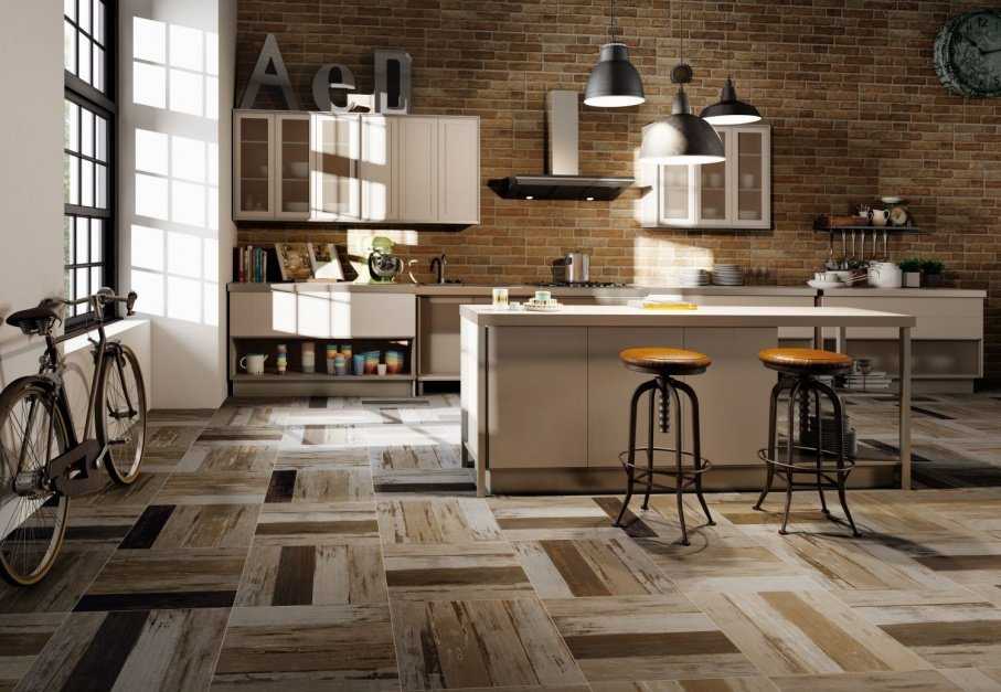 Хорошим интерьерным решение станет комбинирование с другими материалами, например с деревом или кирпичом. Гармонично будет смотреться отделка одной из стен. Для компактного помещения можно использовать лакированный пол.