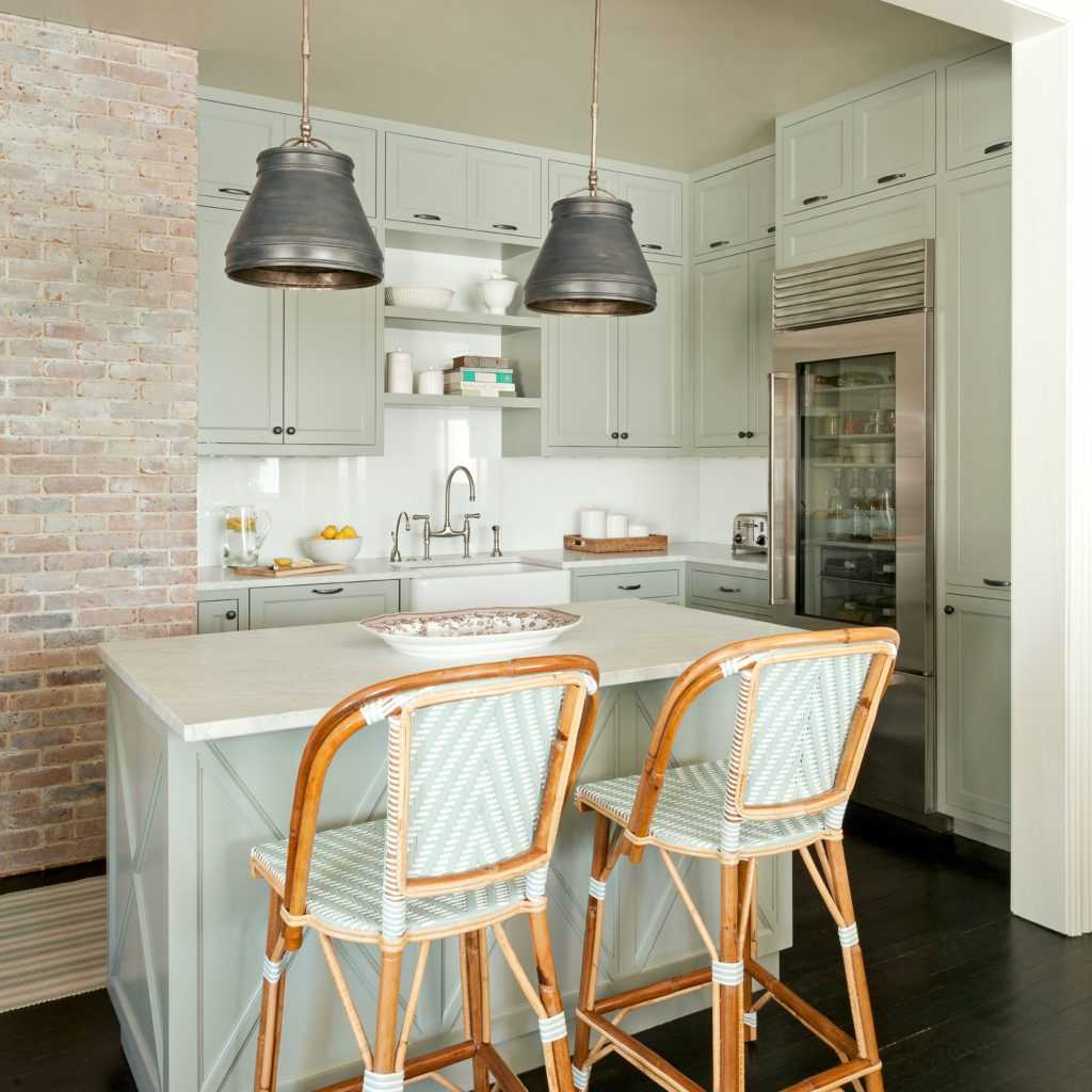 Маленький совет: разместите фигурную люстру непосредственно над кухонным островом. Она станет основным украшением, при этом обеспечивая достаточно света над рабочей поверхностью.