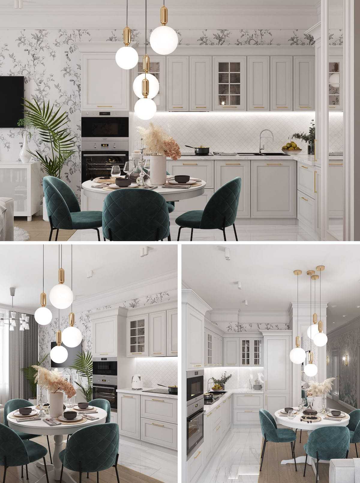 Светящиеся мерцающие дверцы придадут помещению романтичности, уюта и волшебства, в одно мгновение создадут современный стиль красивой белой кухни 2022.
