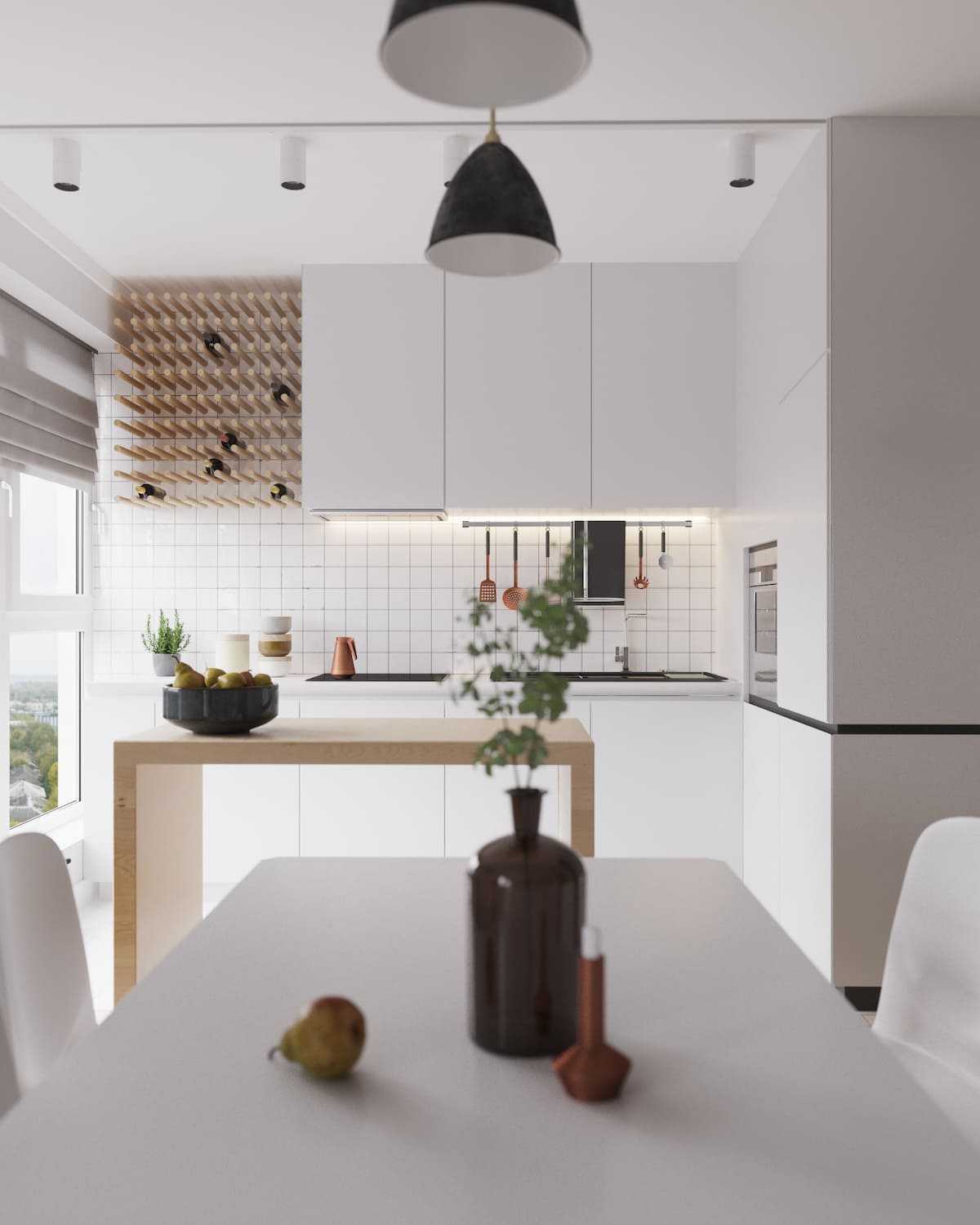 Такой вариант является идеальным для комнаты-студии и городских домов, в которых, часто кухни довольно маленькие и компактные.