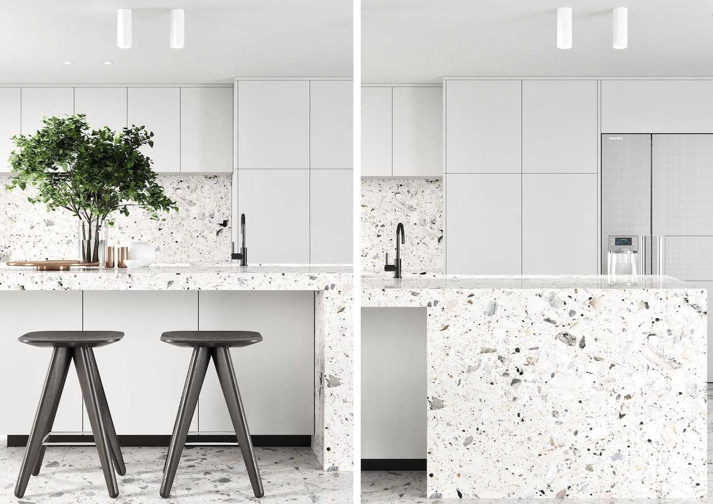 Белую кухонную мебель лучше дополнить качественными столешницами