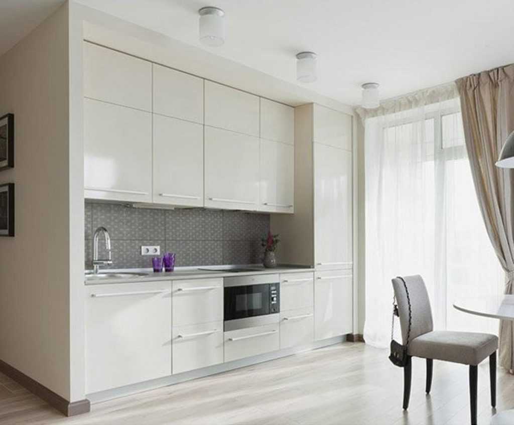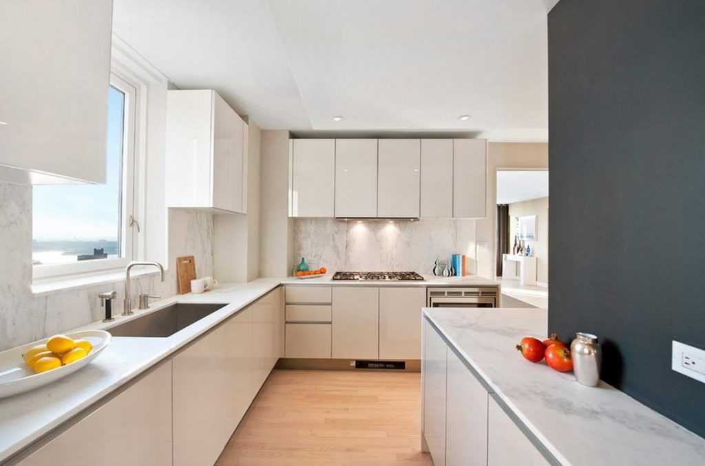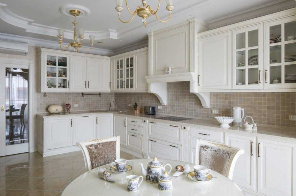 Кухня в белых и бежевых тонах подойдет для любых помещений
