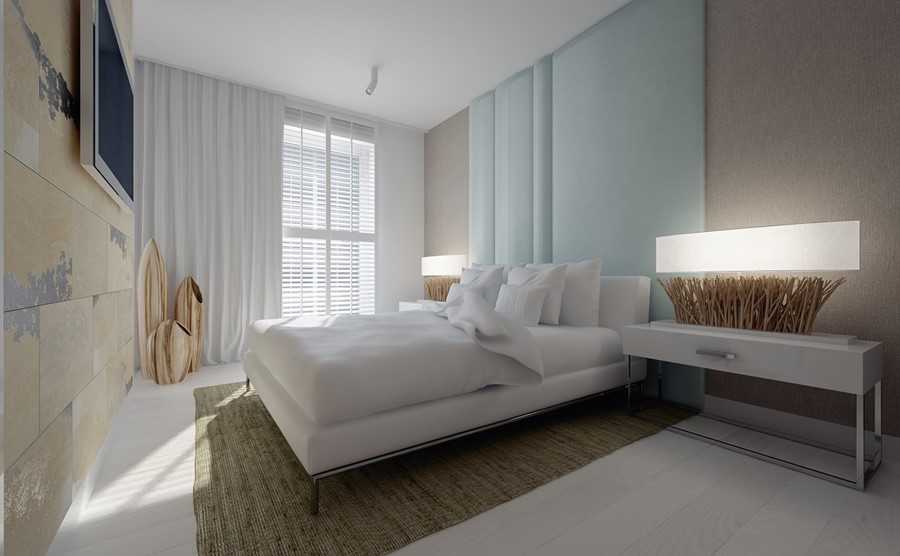 Другая мебель в спальне должна быть функциональной, с гладкой текстурой, простой и желательно в одном — двух приглушенных тонах. Лучше всего положить натуральный материал на пол, например, натуральные деревянные доски согревают интерьер спальни и делают его более уютным. Также, натуральные доски могут украсить одну из стен или стать эффективным продолжением изголовья кровати. Благодаря этой обработке вы получите характерный акцент без добавления лишних предметов.