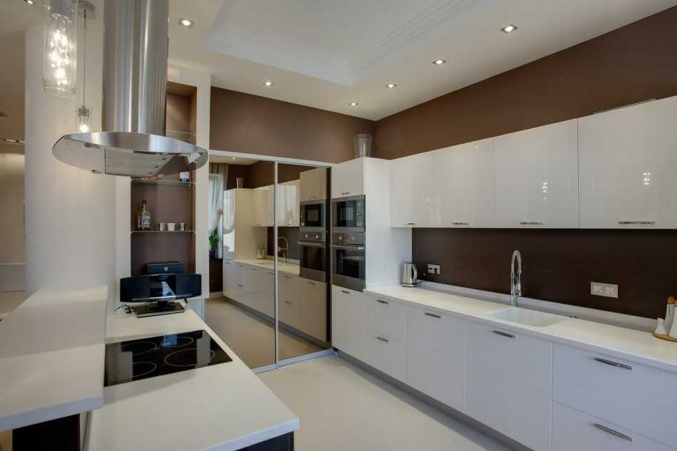Приветствуется встроенная техника, закрытая глухими фасадами кухонного гарнитура;
