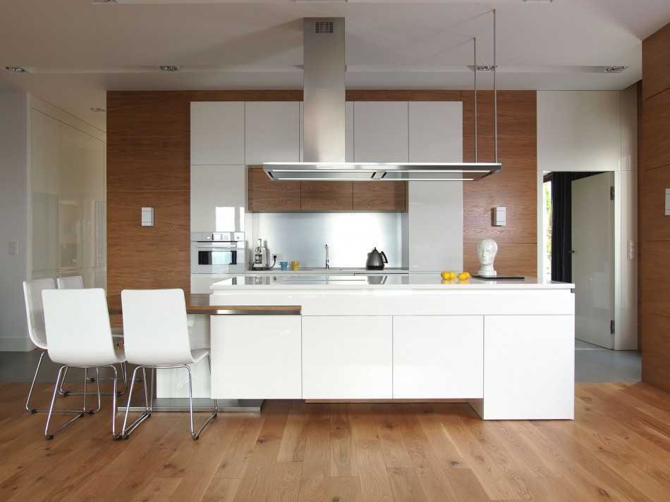 Если вы боитесь переборщить с «холодностью» интерьера, сочетайте в кухонной мебели или в гарнитуре обработанные деревянные поверхности с тем же пластиком. Получится более приветливый дизайн и, в тоже время, эстетика минимализма не нарушится.