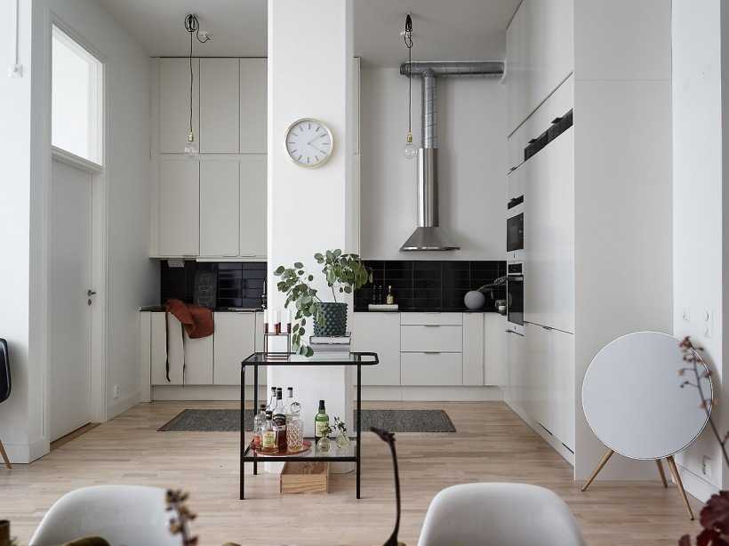 - бытовые плюсы: на кухне удобно готовить, делать уборку, поскольку нет мешающих предметов;