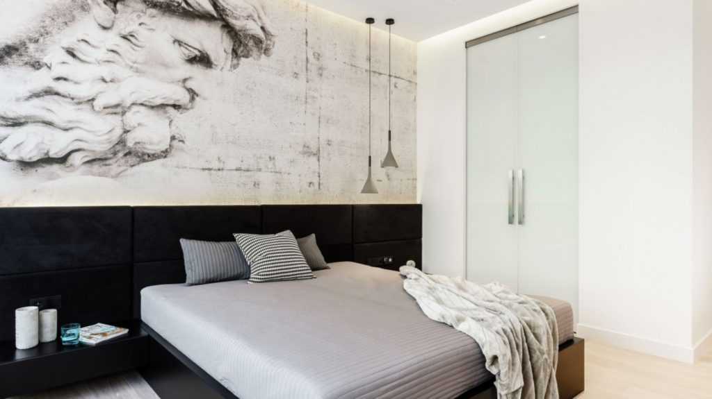 Лучше всего начинать украшать спальню с выбора цветовой палитры. Стоит сосредоточиться на нескольких, например, 3 оттенках. Серый, белый, черный, бежевый и пастель — идеально подходят для этого типа комнаты. Такие цвета не являются подавляющими и доминантными, они являются идеальным фоном для спальни.