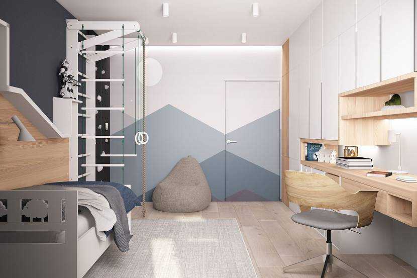 Пространство для детей в минималистском дизайне является подходящим вариантом для многодетной семьи. При выборе функциональной мебели, есть возможность существенно расширить комнату. К примеру, можно прикрепить на стену пару настенных полок для книг и игрушек. Первый шаг в оформлении детской – это выбор фундаментального цвета. Краска или обои в этой комнате должны быть в светлых оттенках.