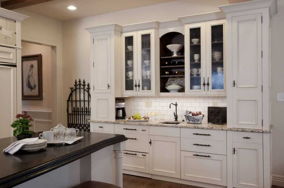 Однако любой из предметов мебели находится на прованской кухне не только из-за функциональности, все они служат украшением. Навесной буфет не только прячет в себе посуду, но и является одновременно полкой, потому что сверху на него можно поставить вазочки, статуэтки и другие мелочи, которые типичны для французской деревни.