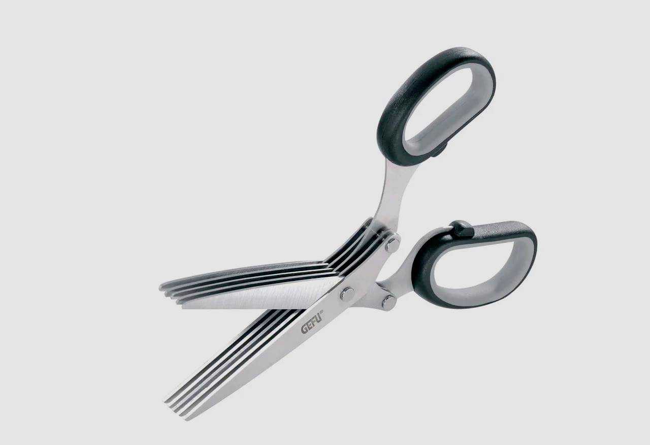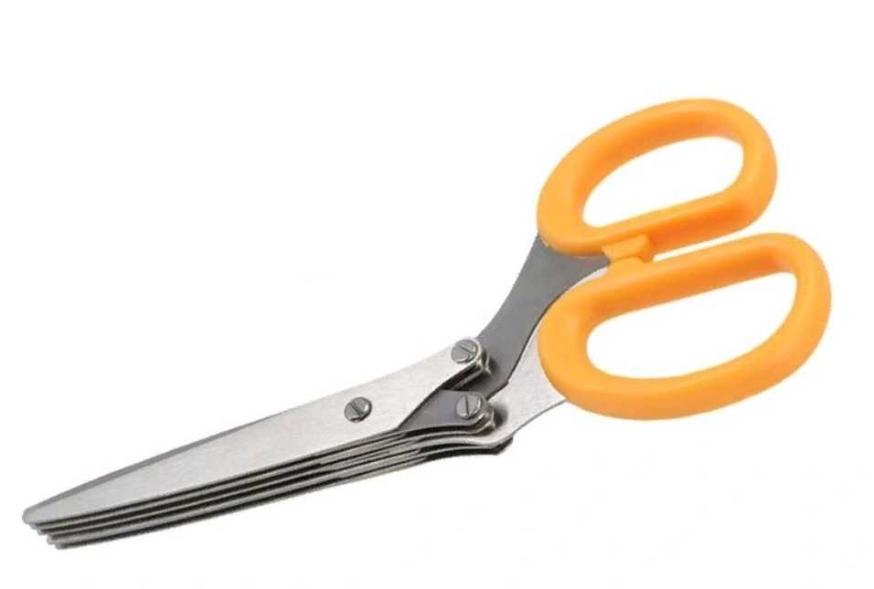 Классическая модель кухонных ножниц, с пятью парами острых лезвий, быстро и аккуратно нарезающих зелень (укроп, петрушку, зеленый лук, салат). Подходят для бытового или профессионального использования. Устройство можно мыть в посудомоечной машине. Кроме нарезания зелени кухонный помощник подходит для нарезания таких материалов, как ткань или бумага. В комплект входит щетка для чистки пространства между ножами. Средняя стоимость составляет – 499 руб.