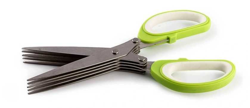Кухонный инструмент, специально разработанный для аккуратного, мелкого нарезания свежей зелени (петрушки, укропа, зеленого лука, кинзы) или салата. Обладают 5 лезвиями, расположенными параллельно друг другу, с помощью которых можно нашинковать зелень быстро, равномерно и без особых усилий. Помимо применения на кухне, могут быть использованы для других хозяйственных целей – разрезания ткани или бумаги. Изделие можно мыть в посудомоечной машине. Благодаря такому инструменту отпадает необходимость использования ножа с разделочной доской. Вес «Migliores» составляет 285 г, длина – 190 мм, ширина ножей – 20 мм. Средняя стоимость девайса – 270 руб.