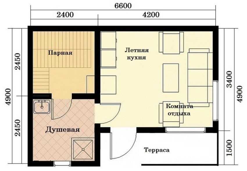 В идеале такой «домик» должен включать в себя зону готовки, столовую, предбанник, где вы будете переодеваться, моечную, а также секцию с санузлом.