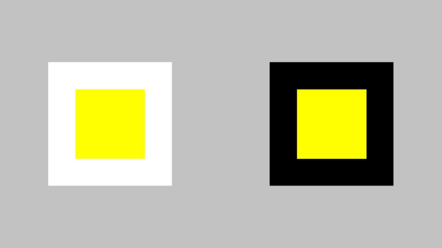 Жёлтый цвет на белом фоне кажется темнее, производит впечатление нежного тепла. На чёрном фоне он кажется светлым и приобретает агрессивный характер. Иллюстрация: Skillbox Media