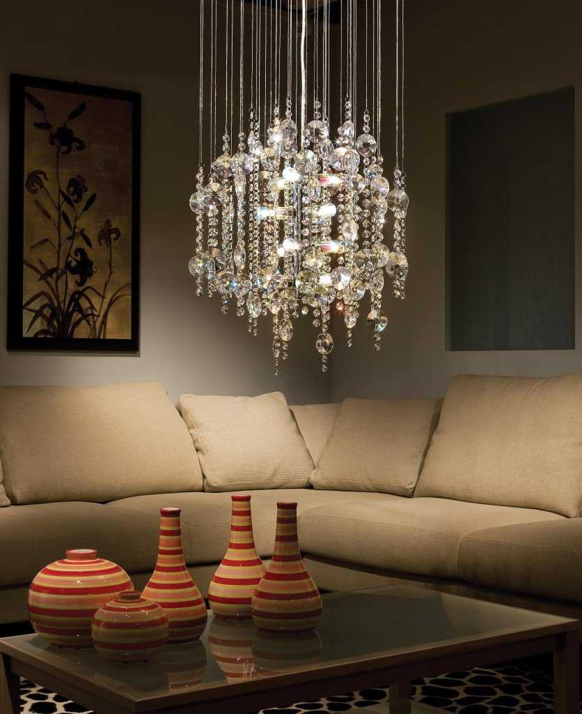 Здесь стоит обратить внимание на вариации люстр, которые очень уместно впишутся в интерьер гостевого помещения: