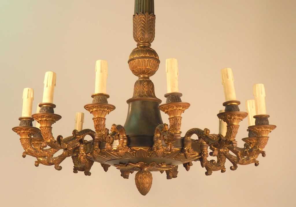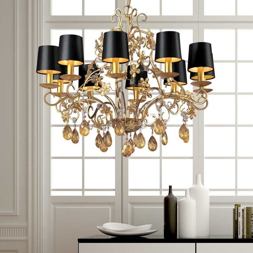 Этот стиль интерьера отличают люстры, каркасы которых выполнены из кованых металлических элементов.Они могут иметь цвет меди, золота, серебра и бронзы. Плафоны сделаны из стекол розового, белого или бежевого цвета.
