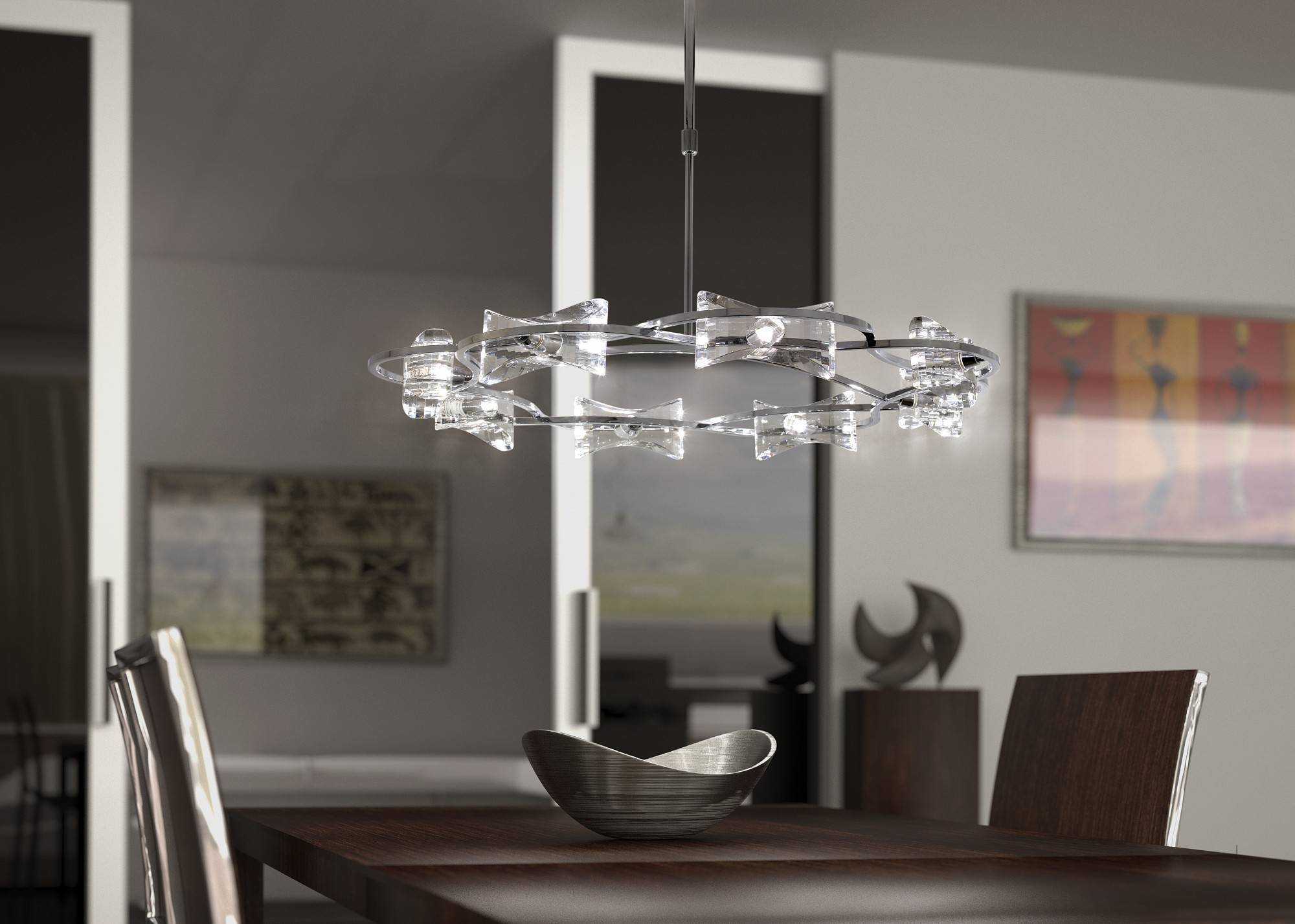 Нередко с помощью люстр осуществляется зонирование пространства, расставляются световые акценты.