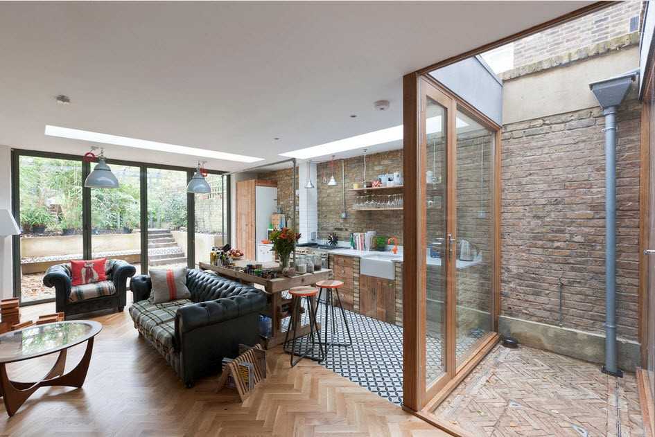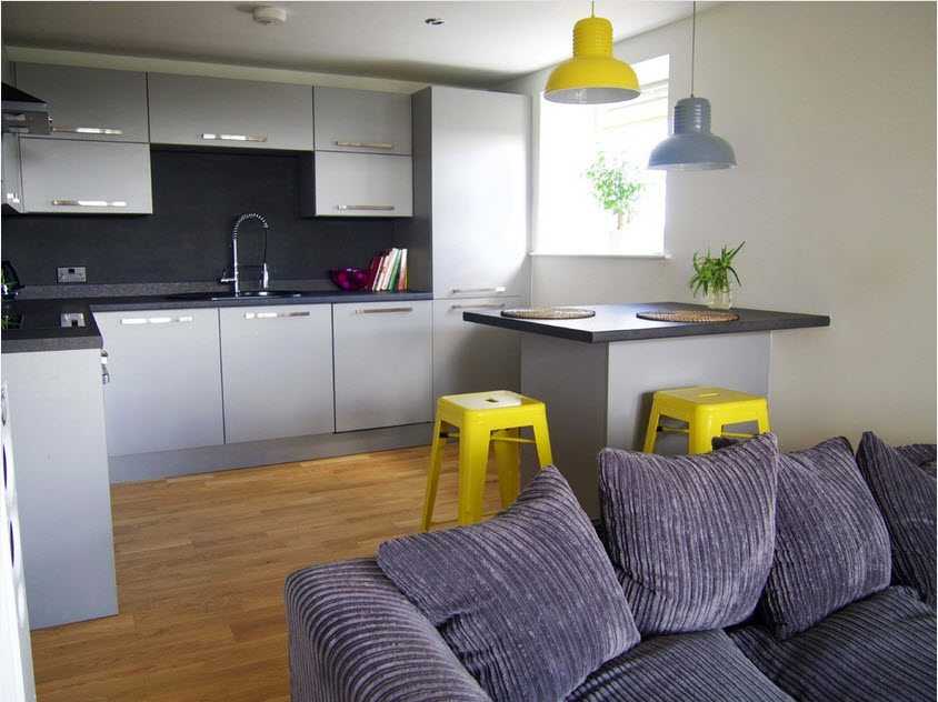 Вы можете выбрать следующий дизайн кухни с диваном: