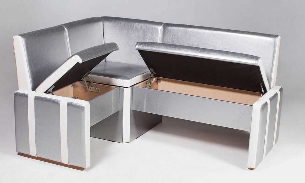 Совет: если вы часто планируете использовать объемные ящики под сидением, то отдавайте предпочтение мебели с подъемным механизмом, расположенным сбоку – так открытию не будет мешать обеденный стол.