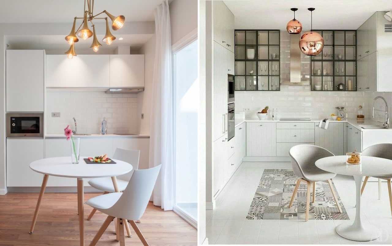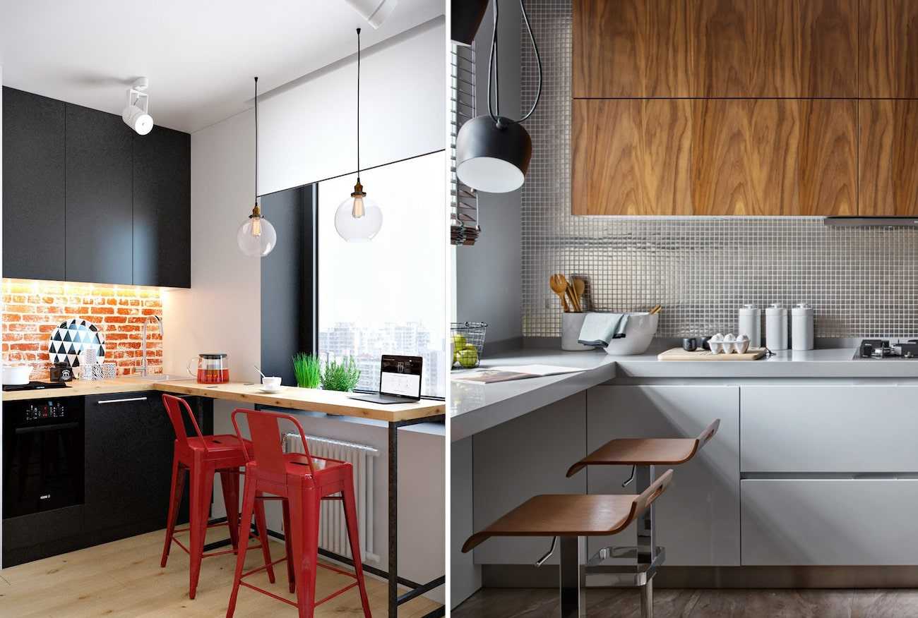 Совет! Если вы планируете создать модный дизайн маленькой кухни 2021, следует продумать функциональную роль углов. Мебельный ансамбль подбирают компактных размеров без громоздких декоративных элементов.