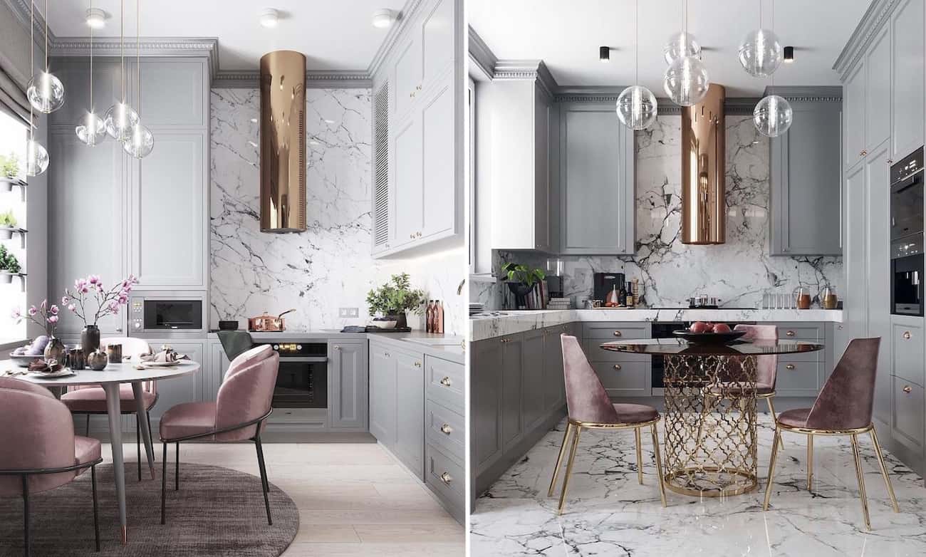 Устанавливают рядом высокие стулья, и романтическая обстановка обеденной зоны становится жемчужиной всего кухонного интерьера 2021.
