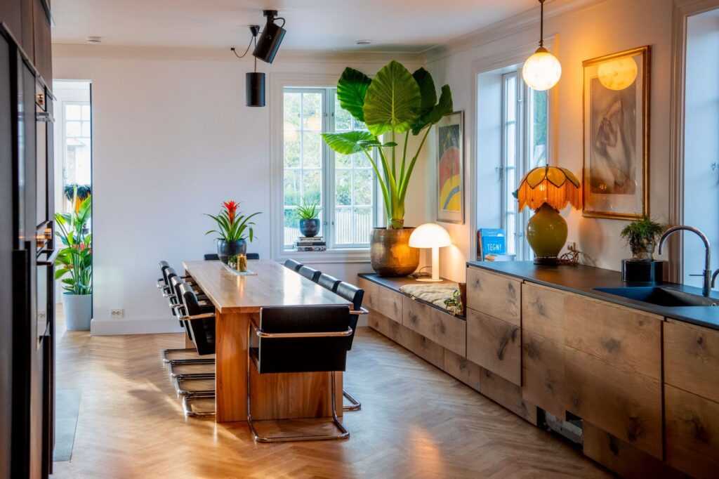 К узкому столу важно подобрать правильные стулья, которые позволят сохранить много свободного пространства