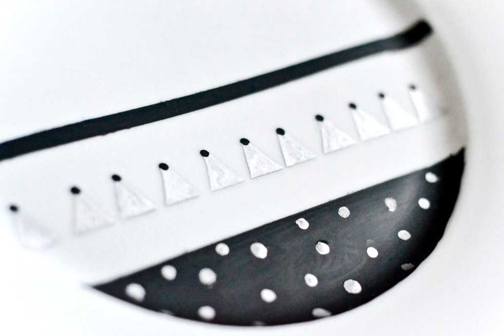 Между полосками рисуем небольшие треугольники фломастером серебристого цвета.
