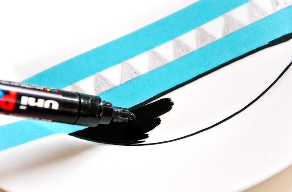 С помощью фломастера черного цвета заполняем нижнюю часть тарелки. Делать это нужно максимально аккуратно.