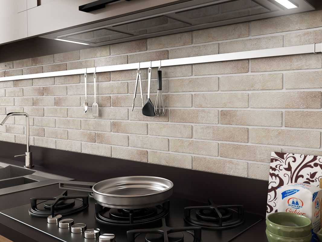 На небольших кухнях следует избегать крупных плиток. Визуальное восприятие стены над кухонной столешницей также зависит от затирки, которая создает перпендикулярные линии между плитками. Для больших плиток эти линии могут выпадать в случайных местах и слишком четко разделять комнату. Кроме того, существует также риск получения большого количества отходов после необходимой обрезки кафеля.