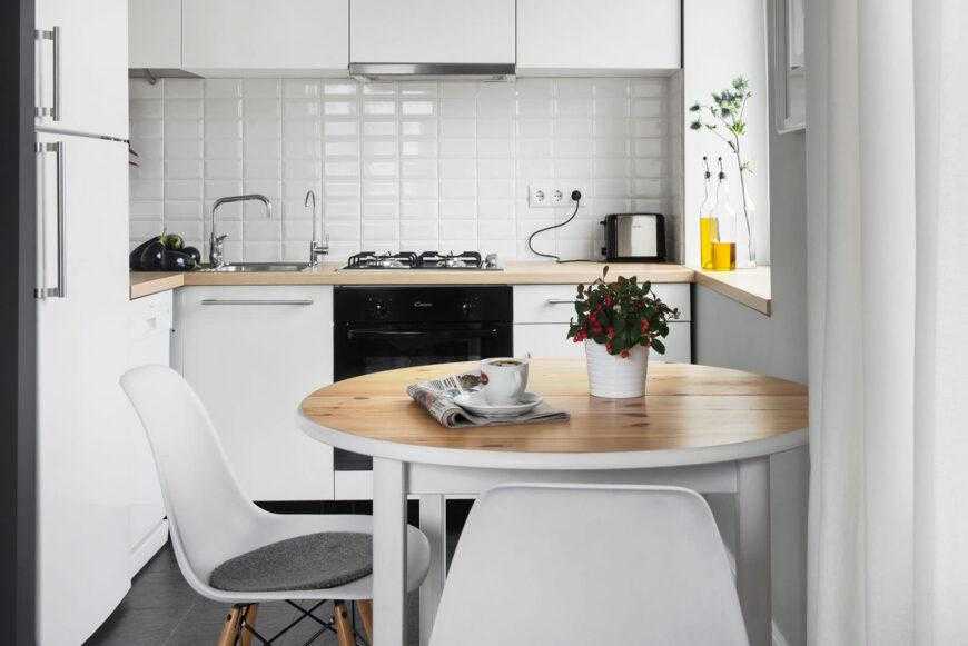 Меньшие плитки лучше для малых кухонь. Они могут быть квадратными или прямоугольными моделями. Этот выбор уже зависит от общего стиля кухни. Чтобы немного увеличить комнату, стоит выбрать блестящую плитку или с зеркальные элементы. Мозаика для фартука тоже будет хорошо смотреться.