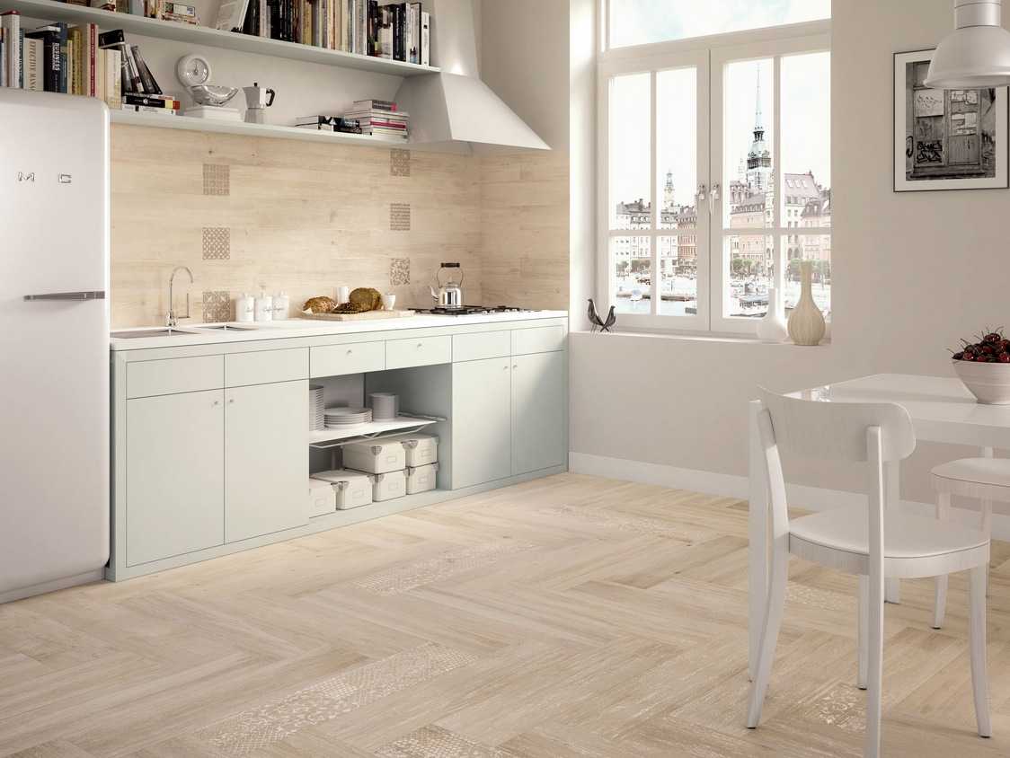 Уход за деревом сложен, потому что сильно подвержен воздействию жидкостей и может деформироваться из-за перепадов температуры. Так как на кухне часто случаются неожиданные ситуации, устанавливать деревянный пол не рекомендуют. По при должном уходе: обработке маслом, лаком, регулярной уборке и аккуратности про готовке пищи, чтобы уменьшить количество грязи, можно установить древесину.