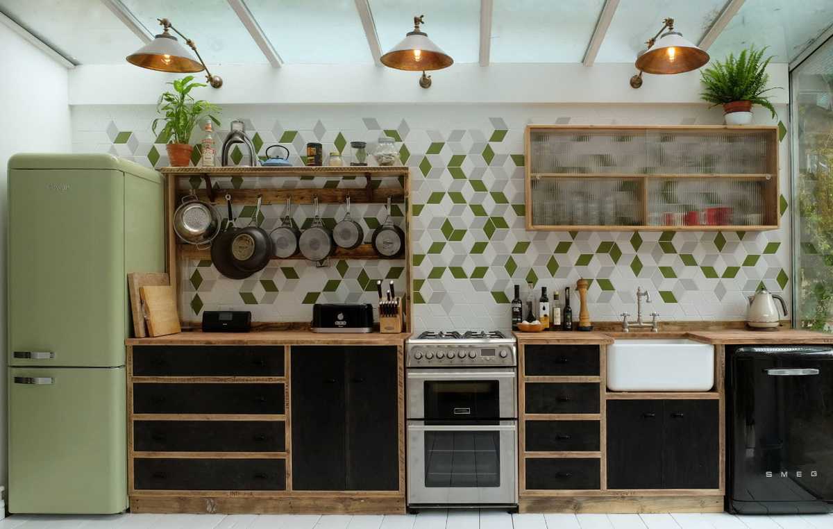 Предпочтительно в таких обстановках устанавливать встраиваемую бытовую технику, чтобы она не выпирала за черты рабочей зоны. Холодильник удачно расположится в нише у смежной или противоположной стены.