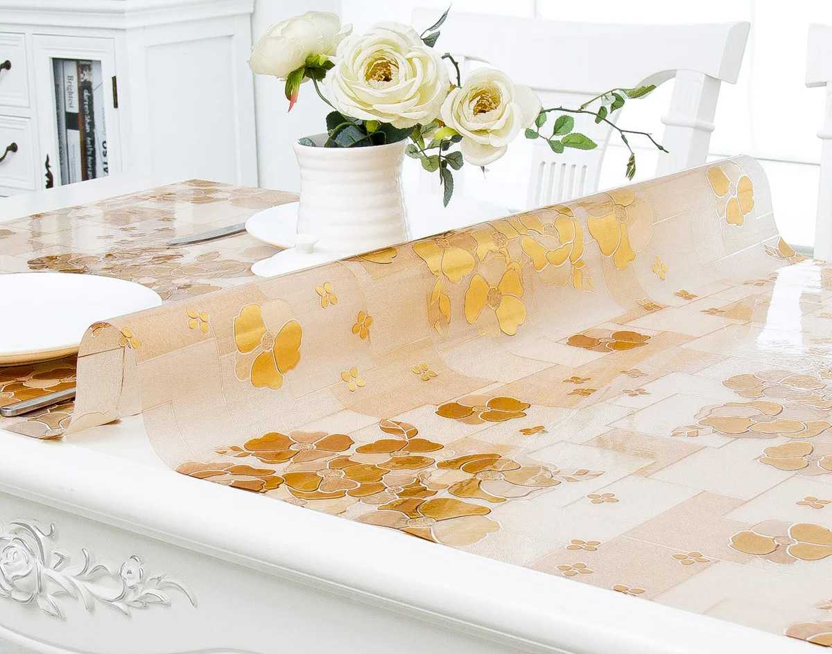 Большое преимущество скатертей ПВХ в том, что их можно подобрать как прозрачно-белые, так и прозрачно-цветные варианты. Такое разнообразие позволяет лучше оформить комнату.