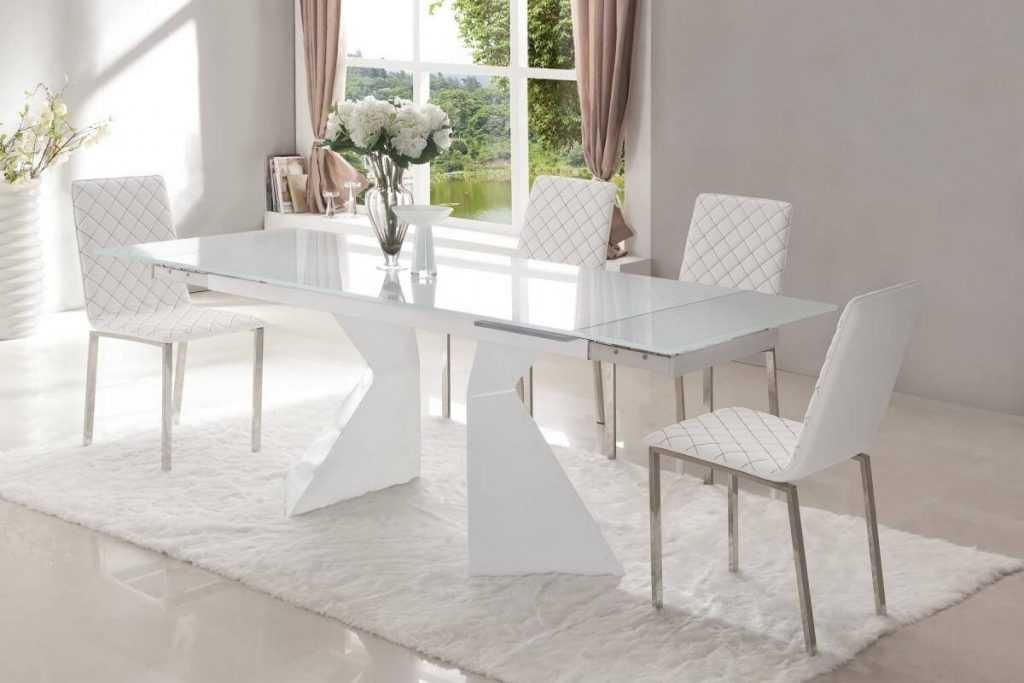 Металл и стекло – два главных “кита”, на которых держится этот популярный стиль. В минималистичном интерьере hi-tech стеклянный раздвижной кухонный стол займет почетное место. Дополнительной изюминкой может стать форма: вытянутый овал как альтернатива прямоугольнику и кругу. Ножки для стола в стиле хай-тек выполнены, безусловно, из металла. Особенно хорошо стеклянный стол сочетается с белой глянцевой кухней в интерьере.