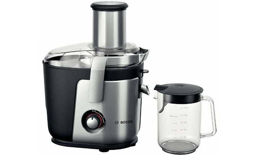 Недорогая универсальная соковыжималка от гиганта в области бытовой техники Bosch. Проста в управлении, вместительна. Мощность — 1200 Вт, имеет 3 скорости, может перерабатывать большие объёмы продуктов. На это указывают большие резервуары для сока и жмыха — 1,5 и 3 л. Ёмкости раздельные, их легче очищать. Материал корпуса — сталь. Защита от случайного включения, функция автоматического выброса мякоти, система «Капля-стоп», пеносепаратор, защита от случайного включения.