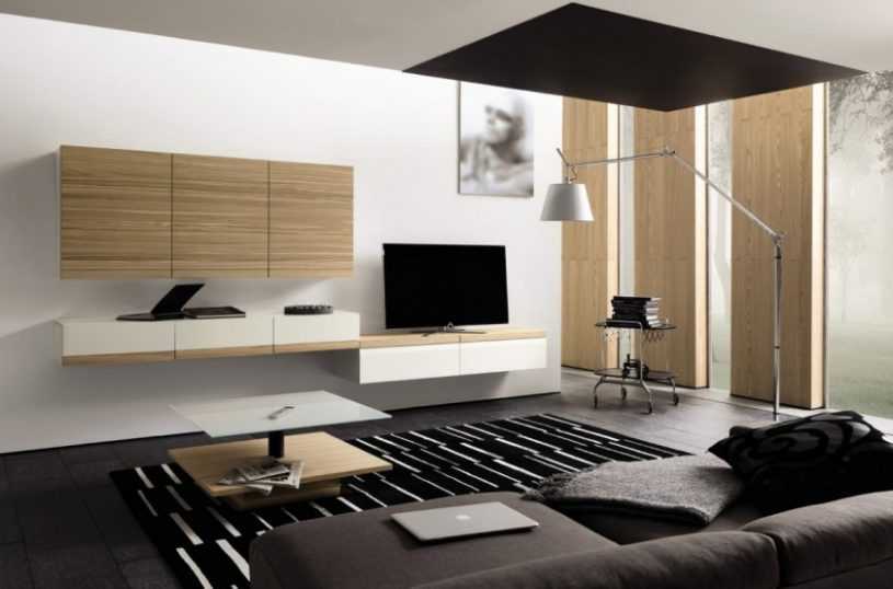 При оформлении гостиной комнаты в современном стиле стоит подбирать конструкции модульного вида так, чтобы они смогли стать удобными и функциональными. Во время установки этих конструкций их можно дополнить другими видами шкафов, к примеру, поставить рядом барный шкаф для различных напитков, а также стаканов, фужеров, рюмок.