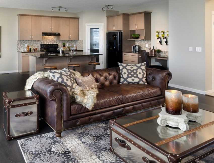 Коричневого тона диван оптимальней всего вписывается в интерьер, созданный в классическом стилевом направлении. В модных стилистиках тоже используется подобная обстановка. В последнем варианте понадобится грамотное обустройство в качестве аксессуаров, которые соответствуют тону дивана. Лучшими стилистиками для применения шоколадной обстановки считаются: