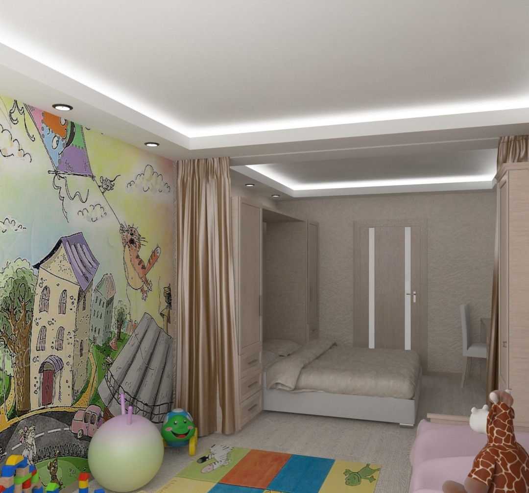 Может показаться неправдоподобным, но в «однушке» можно успешно разместиться даже с двумя детьми. До определенного возраста их люльки и игрушки с легкостью уместятся в общей родительской зоне. Но по мере взросления, нужно обустроить им дополнительное пространство. Интерьер однокомнатной квартиры с двумя детьми можно обыграть при помощи двухъярусной кровати и другой многофункциональной эргономичной мебели, а разместить ее можно в предварительно утепленной лоджии или в отгороженной части большой спальни.