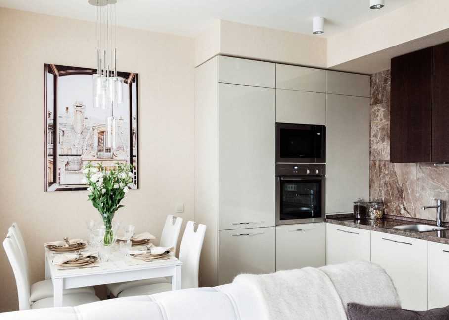 Зонирование кухонного уголка и гостиной посредством перегородки, объемной мебели или тяжелых штор имеет смысл только в том случае, если помещение достаточно просторно