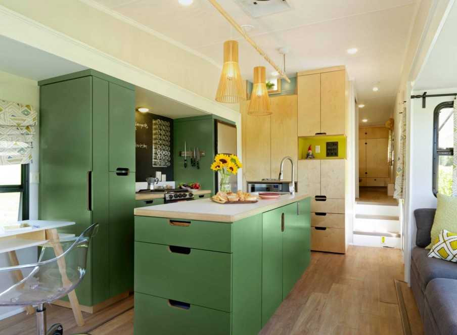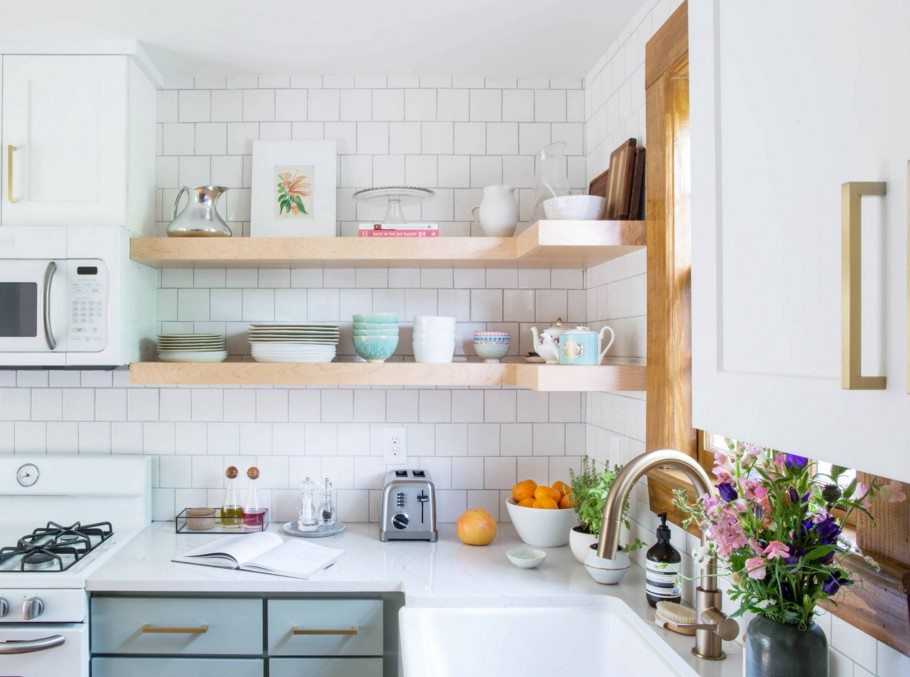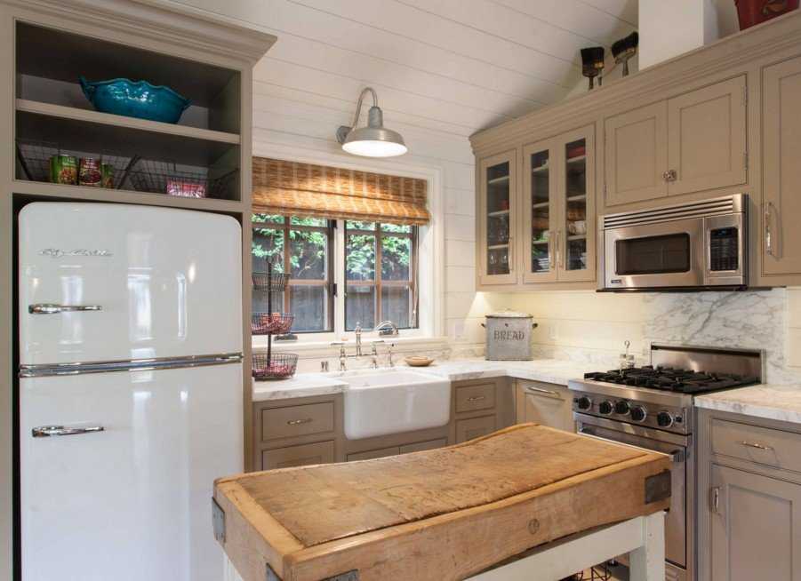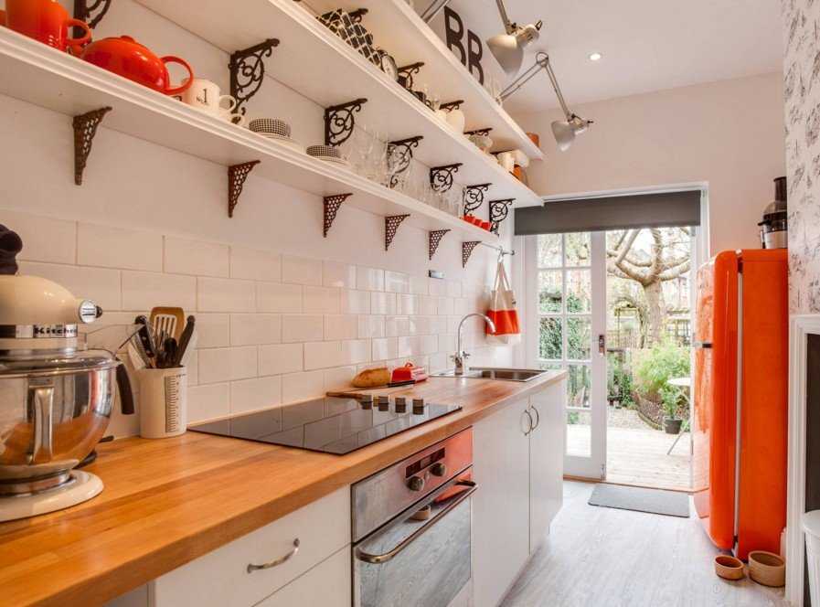 Дизайн интерьера зависит от пожеланий владельцев недвижимости, модных тенденций, финансовых возможностей. В том случае, если бюджет ограничен, можно оборудовать большое количество полок и шкафов, что даст возможность сложить максимум кухонной утвари.